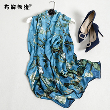 油画真丝丝巾桑蚕丝女 防晒披肩围巾旅游防嗮沙滩巾长款韩版夏季