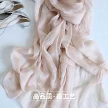 2017新款真丝褶皱丝巾女士春秋桑蚕丝文艺森女系夏季防晒旅游披肩