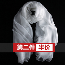 大尺寸长条黑色白色真丝丝巾女桑蚕丝围巾春夏季薄款空调防晒披肩