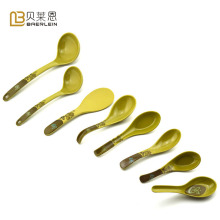 如意密胺餐具仿瓷勺子如意绿色中式汤匙条更汤勺饭勺弯钩勺塑料勺