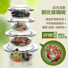 包邮菲内克斯烤箱微波炉碗耐热钢化玻璃碗带盖汤碗泡面碗沙拉碗
