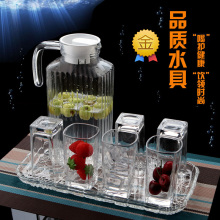 创意家居透明玻璃杯套装 耐热果汁杯茶杯扎壶水杯鸭嘴壶托盘水具