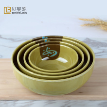 中式如意美耐皿仿瓷餐具如意绿色密胺碗仿瓷碗饭碗汤碗小碗糖水碗