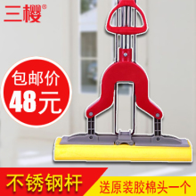 三樱家用拖地板省力对折式海棉拖把免手洗挤水大号吸水拖把海绵头