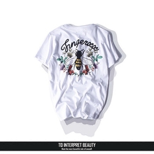 潮流物 概念植绒刺绣蜜蜂 圆领白色短袖T恤学生百搭显瘦卡通纯棉