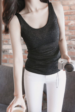 2017春装新款女装韩版亮丝修身针织吊带背心女打底衫双U内搭外穿