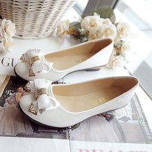 秋季甜美蝴蝶结平底小坡跟单鞋韩国公主浅口单鞋低跟女鞋皮鞋包邮