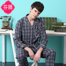 芬腾2017新款睡衣春秋季男士睡衣格子长袖长裤休闲宽松家居服套装