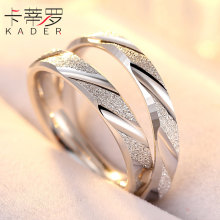 卡蒂罗925银情侣戒指女开口对戒男士指环一对创意日韩版光面刻字