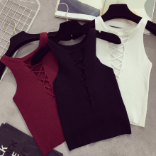 夏季韩版系带露背百搭打底吊带背心女 短款针织外穿内搭修身小衫