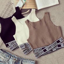 夏季新款拼接字母印花弹力搭带短款露脐针织吊带背心女夏修身小衫