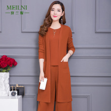 玫兰妮2017春装新款大码女装外套韩版阔腿裤三件套气质时尚套装女