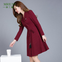 2017春装新款韩版修身大码显瘦长袖中长款气质系带春季连衣裙女