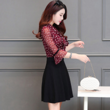2017春秋装新款韩版修身中长款假两件长袖碎花女士春季打底连衣裙
