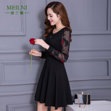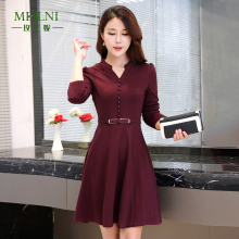 2016春秋装新款女装韩版修身长袖v领女士连衣裙大码气质显瘦裙子