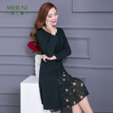 玫兰妮2017春装新款韩版显瘦中长款大码拼接长袖A字裙连衣裙女