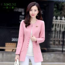 2016春秋装新款圆领双排扣长袖女式风衣韩版修身中长款休闲外套