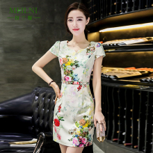 玫兰妮连衣裙夏2016新款修身显瘦复古印花裙子中国风旗袍包臀裙