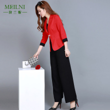 2017春装新款韩版时尚套装女气质阔腿裤长裤春季大码两件套套裤