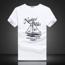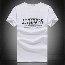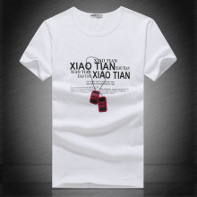 春夏季男装纯棉印花男士圆领短袖t恤半袖个性修身青年学生白色潮