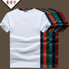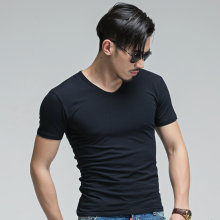 夏季男士短袖t恤男装纯色v领打底衫纯棉半袖男修身体恤纯黑白衣服