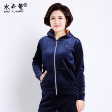 水卉曼2017春季运动套装韩国进口金丝绒中老年女装妈妈装加厚大码
