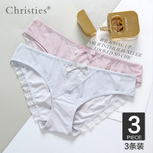 内裤女性感蕾丝面料透明网纱女士三角裤中低腰舒适包臀冰丝3条装