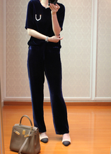 W0462 永恒魅力 手工钉珠 全真丝 丝绒套装 短袖上衣+九分直筒裤