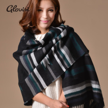 GLOVIN秋冬民族风条纹仿羊绒两用超大加厚保暖空调披肩围巾女士