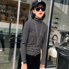 秋冬黑白条纹修身显瘦半高领翻领长袖针织衫舒适打底衫女全国包邮