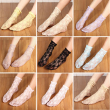 厂家 素色夏季薄款冰丝蕾丝硅胶防滑防臭隐形船袜女士豆豆袜子
