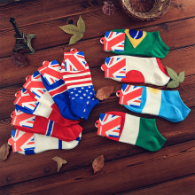 厂家欧美美国英国国旗款个性纯棉男士女士全棉情侣船袜子夏