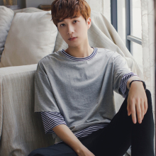 夏季2017日系文艺青年宽松短袖男T恤潮流五分袖中袖百搭半袖体恤