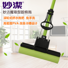 妙洁魔吸型胶棉拖把神奇海绵拖把家用吸水拖布滚轮挤水拖把0509