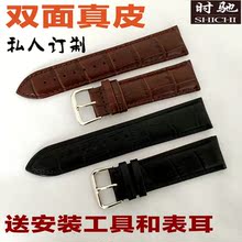 正品双面真皮表带男女款黑色棕色小牛皮带针扣式手表配件名牌代用