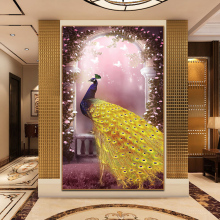 钻石画满钻客厅5D新款玄关竖版圆砖卧室欧式金色孔雀贴钻石十字绣