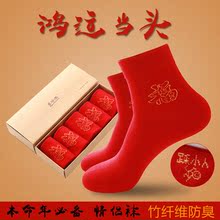 足乐途本命年无骨大红袜子福字结婚袜男女士情侣红色棉袜礼盒装