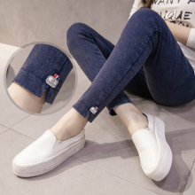 孕妇春秋小脚裤韩版修身弹力托腹孕妇打底裤标签时尚洗水牛仔裤
