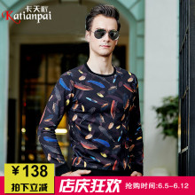 卡天派 2017春装新款时尚卫衣男修身 圆领羽毛印花韩版休闲保暖潮