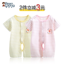憨豆龙婴儿连体衣纯棉宝宝夏装薄款男女童开档哈衣新生儿短袖爬服