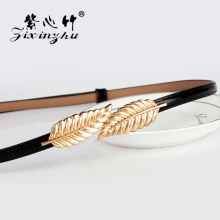 紫心竹女士细腰带牛皮时尚打结装饰连衣裙毛衣真皮针扣窄款皮带女