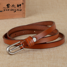 头层牛皮打结细腰带女装饰配连衣裙子 时尚韩版百搭真皮细款皮带