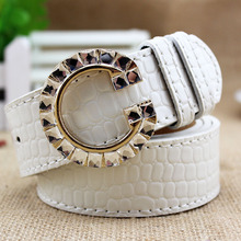 宽腰带女士皮带韩版休闲百搭牛仔裤带女水钻针扣PU宽腰带学生简约
