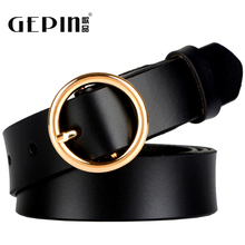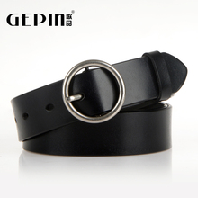 圆扣皮带女士宽黑色简约百搭男女通用休闲牛皮真皮装饰牛仔裤腰带