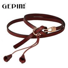 歌品百搭牛皮打结装饰毛衣连衣裙腰带女士细皮带真皮连衣裙腰链女