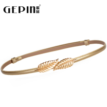 歌品 韩版真皮金色树叶加长细皮带装饰百搭裙带女式腰带女配裙子