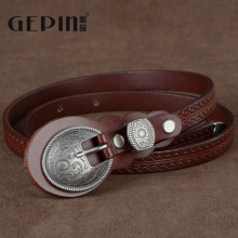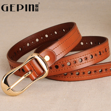 歌品牛皮镂空女士皮带韩版百搭细腰带女款真皮时尚装饰裙子裤带女