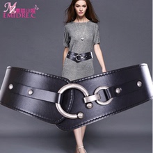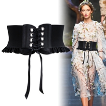 欧美时尚绑带系带束腰显瘦超宽腰封衬衫弹力腰带装饰女连衣裙黑色