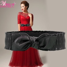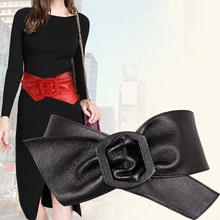 蝴蝶结装饰腰带松紧女简约百搭时尚宽腰封真皮黑色连衣裙腰带配饰
