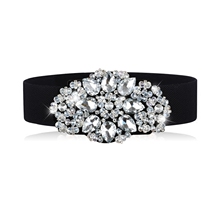 优雅松紧水晶水钻镶嵌装饰连衣裙腰带女细配裙子皮带简约百搭时尚